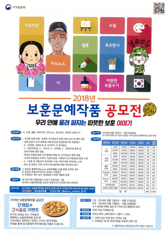 À̹ø °ø¸ðÀüÀº 2018³â 8¿ù 1ÀϺÎÅÍ 9¿ù 30ÀϱîÁö ´ëÇѹα¹ ±¹¹ÎÀ̶ó¸é ´©±¸³ª Âü¿© °¡´ÉÇÏ°í ½Ã, ¼öÇÊ, À¥Å÷, À̸ðƼÄÜ, Ä«µå´º½º, Ã߸ðÇå½Ã, µû¶æÇÑ º¸ÈƼö±â µî ÃÑ 7°³ ºÐ¾ß·Î ÁøÇàµÇ¸ç, °ø½Ä ȨÆäÀÌÁö(www.º¸Èƹ®¿¹¹°.kr)¸¦ ÅëÇØ °ø¸ðÀü¿¡ ´ëÇÑ ´Ù¾çÇÑ Á¤º¸¸¦ È®ÀÎ ÇÒ ¼ö ÀÖ´Ù.