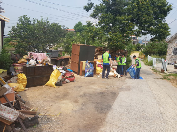 ÇູŰ¿òÃßÁø´Ü ´Ü¿ø 10¿©¸íÀÌ Âü¿©ÇØ Å¸µé¾î °¡´ÂµíÇÑ Æø¿° ¼Ó¿¡¼ ±¸½½¶¡À» È긮¸ç µµ¹è ¹× ÁÖº¯ ȯ°æ Á¤ÈȰµ¿À» ½Ç½ÃÇß´Ù. ´ë»ó °¡Á¤ÀÌ º¸´Ù ÄèÀûÇÑ È¯°æ¿¡¼ »ýȰÇÒ ¼ö ÀÖµµ·Ï ÈûÀ» º¸Å´ µî ÈÆÈÆÇÑ ÀÌ¿ô »ç¶ûÀ» ÀüÇß´Ù.