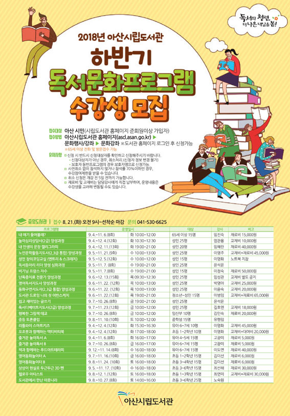 ¾Æ»ê½Ã¸³µµ¼°ü(°üÀå ±è¼±¿Á)Àº Áö¿ª ÁֹεéÀÇ µ¶¼ ¹®È È®»êÀ» À§ÇØ ´Ùä·Î¿î µ¶¼¹®ÈÇÁ·Î±×·¥À» ÁغñÇØ ¿À´Â 8¿ù 21ÀϺÎÅÍ ¼ö°»ýÀ» ¸ðÁýÇÑ´Ù.
