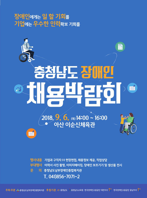 Ãæ³²µµ³²ºÎÀå¾ÖÀÎÁ¾ÇÕº¹Áö°ü(°üÀå ¹é³«Èï)ÀÌ ÁÖÃÖÇÏ´Â ¡®2018 Ãæ³²µµÀå¾ÖÀÎä¿ë¹Ú¶÷ȸ¡¯°¡ 9¿ù 6ÀÏ ¿ÀÈÄ 2½Ã ¾Æ»ê À̼ø½ÅüÀ°°ü¿¡¼ ±¸Àξ÷ü ¹× Àå¾ÖÀÎÁ÷¾÷ÀçȰ½Ã¼³ µî ÃÑ 50¿©°³ ±â°üÀÌ Âü¿©ÇÑ °¡¿îµ¥ ¡®Àå¾ÖÀο¡°Ô´Â ÀÏÇÒ ±âȸ¸¦, ±â¾÷¿¡´Â ¿ì¼öÀη Ȯº¸ ±âȸ¸¦¡¯À̶ó´Â ijġÇÁ·¹ÀÌÁî·Î °³ÃֵȴÙ.