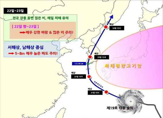 ÇØ»ó ³¯¾¾´Â ÅÂdzÀÇ °£Á¢ÀûÀÎ ¿µÇâÀ¸·Î 21Àϰæ, Á¦ÁÖµµ³²Âʸչٴٸ¦ ½ÃÀÛÀ¸·Î, Á¡Â÷ ³²Çصµ ¹°°áÀÌ ³ô¾ÆÁö°Ú°í, 22ÀÏ¿¡´Â ¼ÇØ»óÀÇ ¹°°áµµ ¸Å¿ì ³ô¾ÆÁ® 23ÀϱîÁö À̾îÁö°ÚÀ¸¸ç ƯÈ÷ 22~23ÀÏ¿¡´Â ÅÂdzÀÇ Á÷Á¢ÀûÀÎ ¿µÇâÀ¸·Î ³²ÇØ¿Í ¼Çظ¦ Áß½ÉÀ¸·Î 5~8mÀÇ ¸Å¿ì ³ôÀº ÆÄ°í°¡ ÀϰÚÀ¸´Ï, ÇØ»ó ¾ÈÀü»ç°í µî¿¡ ´ëÇÑ Ã¶ÀúÇÑ ´ëºñ¿Í ÇÔ²² ¾ÕÀ¸·Î ¹ßÇ¥µÇ´Â ±â»óÁ¤º¸¿¡ À¯ÀÇÇϱ⠹ٶõ´Ù°í ¹àÇû´Ù.