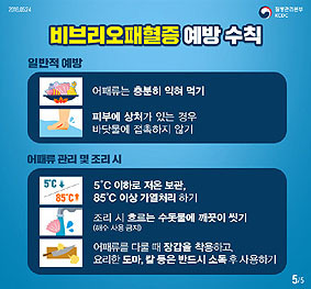 ºñºê¸®¿ÀÆÐÇ÷Áõ ¿¹¹æÀ» À§Çؼ´Â ¡ã¾îÆÐ·ù¸¦ 5¡É ÀÌÇÏ·Î Àú¿Âº¸°üÇϱ⠡ãÃæºÐÈ÷ ÀÍÇô Á¶¸®Çϱâ(85µµ ÀÌ»ó °¡¿) ¡ãÁ¶¸® ½Ã ÇØ¼ö¸¦ »ç¿ëÇÏÁö ¸»°í È帣´Â ¼öµ¾¹°¿¡ ±ú²ýÀÌ ¾Ä±â ¡ã¿ä¸®ÇÑ µµ¸¶, Ä® µîÀº ¹Ýµå½Ã ¼Òµ¶ ÈÄ »ç¿ëÇϱ⠡ã¾îÆÐ·ù¸¦ ´Ù·ê ¶§ Àå°© Âø¿ëÇϱ⠡ãÇǺο¡ »óó°¡ ÀÖÀ» °æ¿ì ¹Ù´å¹° Á¢ÃËÇÏÁö ¾Ê±â µî ÀÏ»ó»ýȰ ¶Ç´Â ¾îÆÐ·ù Á¶¸® ½Ã¡®ºñºê¸®¿ÀÆÐÇ÷Áõ ¿¹¹æ¼öÄ¢ Áؼö¡¯°¡ Áß¿äÇÏ´Ù.