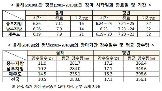 | | ¨Ï ¿Â¾ç½Å¹® | | ÇÑÆí ´ëÀü±â»óûÀº ¿ÃÇØ ´ëÀü¡¤¼¼Á¾¡¤Ãæ³²Áö¹æÀ» Æ÷ÇÔÇÑ ÁߺÎÁö¹æ À帶´Â 6¿ù 26ÀÏ¿¡ ½ÃÀ۵Š7¿ù 11ÀÏ¿¡ Á¾·áµÆÀ¸¸ç, À帶±â°£Àº 16ÀÏ·Î Æò³â(32ÀÏ)º¸´Ù ¸Å¿ì ª¾Ò´Ù°í ¹àÇû´Ù. À̹ø À帶±â°£ µ¿¾È ´ëÀü¡¤¼¼Á¾¡¤Ãæ³²Áö¹æ °¼ö·®Àº 305.7§®·Î Æò³â(351.4§®)º¸´Ù Àû¾ú´Ù.