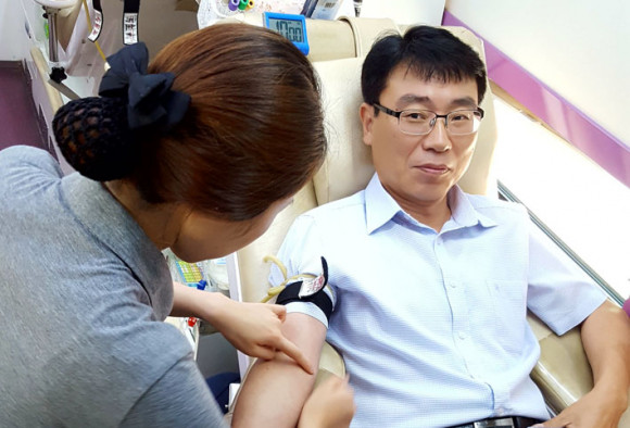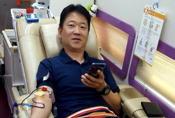 ´ëÀü¼¼Á¾Ãæ³²Ç÷¾×¿ø È«»ó¿ì °úÀåÀº "¾Æ»ê½ÃûÀº ¿©¸§¡¤°Ü¿ïö µî Ç÷¾×¼ö±ÞÀÌ ¾î·Á¿î ½Ã±â»Ó ¾Æ´Ï¶ó ƯÈ÷ ÇåÇ÷ÀÏÁ¤ÀÇ °ø¹é ½Ã¿¡µµ Ç×»ó ¸¶´ÙÇÏÁö ¾Ê°í ÇåÇ÷ºÀ»ç¸¦ ½ÇÃµÇØÁֱ⿡ ´õ¿í °¨»çµå¸®¸ç, ¹«´õ¿î ³¯¾¾¿¡ »ç¶ûÀÇ ¿ÂÁ¤À» º£Ç®¾î ÁֽŠ¾Æ»ê½Ã°ø¹«¿ø°ú ½Ã¹Îµé ´öºÐ¿¡ ¿À´Ã ÇÏ·ç Èûµç ÁÙµµ ¸ô¶úÀ¸¸ç °¨»çÇÏ´Ù"°í ¸»Çß´Ù.