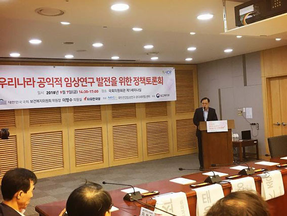 À̾î À̸í¼ö À§¿øÀåÀº Èñ±Íº´ Ä¡·á ¿¬±¸ÀÇ °øÀÍÀû °¡Ä¡¿¡ ´ëÇÑ ±¹¹ÎÀû ÀνÄÀüȯ°ú ȯÀÚ Áß½ÉÀÇ Àӻ󿬱¸ È®´ë ¹× ±ä¹ÐÇÑ Á¤Ã¥ ¿¬°èÀÇ Çʿ伺µµ °Á¶Çß´Ù.