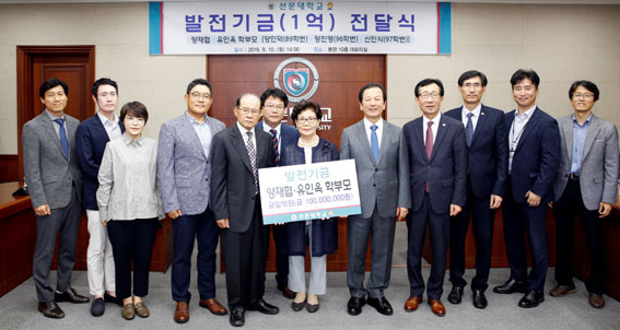 ¼±¹®´ëÇб³(ÃÑÀå Ȳ¼±Á¶)´Â Áö³ 9¿ù 10ÀÏ º»°ü 10Ãþ ´ëȸÀǽǿ¡¼ ¾çÀçÇù?À¯ÀοÁ ºÎºÎ¿¡°Ô ÀåÇÐ±Ý 1¾ï ¿øÀ» Àü´Þ¹Þ¾Ò´Ù.