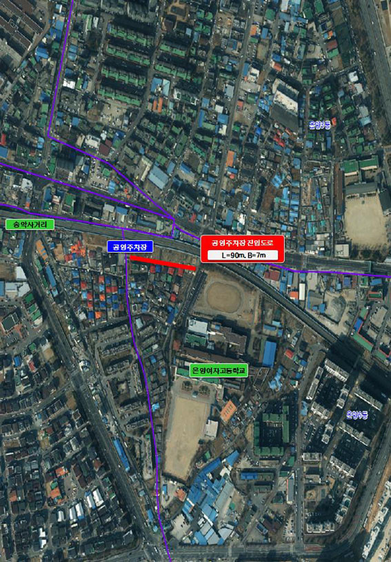 Âø°ø ³ë¼±Àº ¡ã½Åâ À¾³»¸® ÀÏ¿ø ¼Ò·Î2-350È£¼±(L=95m, B=8m), ¡ãµÐÆ÷¸é µÐÆ÷¸® ÀÏ¿ø ¼Ò·Î2-27È£¼±(L=65m, B=8m), ¡ã¿ëȵ¿ °ø¿µÁÖÂ÷Àå ÁøÀÔµµ·Î(L=70m, B=7m) 3°³ ³ë¼±À¸·Î ±Ý³â 8¿ù±îÁö ¼³°è ¹× º¸»óÀ» ¿Ï·áÇß°í ¿À´Â 2019³â 3¿ù Áذø ¸ñÇ¥·Î Çϰí ÀÖ´Ù.