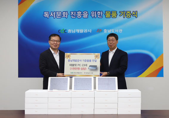 Ãæ³²°³¹ß°ø»ç´Â À̹ø ±âÁõ½Ä¿¡¼ Ãæ³²µµ¼°üÀÇ ÀüÀÚÃ¥ ÀÌ¿ëȰ¼ºÈ¿Í µ¶¼¹®È ÁøÈïÀ» À§ÇÑ ÅÂºí¸´ PC 23´ë(1õ¸¸ ¿ø »ó´ç)¸¦ Àü´ÞÇß´Ù.