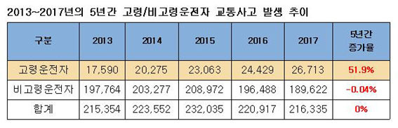 °í·É¿îÀüÀÚ¿¡ ÀÇÇÑ ±³Åë»ç°í´Â 2017³â 2¸¸ 6õ713°ÇÀ¸·Î 2013³âÀÎ 5³â Àü¿¡ ºñÇØ 51.9%ÀÇ Áõ°¡À²À» º¸¿´´Ù. 2017³â Àüü »ç°í°¡ 5³â Àü°ú ºñ±³ÇØ °ÅÀÇ Áõ°¡ÇÏÁö ¾ÊÀº °Í¿¡ ºñÇÏ¸é °í·É ¿îÀüÀÚÀÇ ±³Åë»ç°í Áõ°¡´Â ½É°¢ÇÑ »óȲÀÌ´Ù.