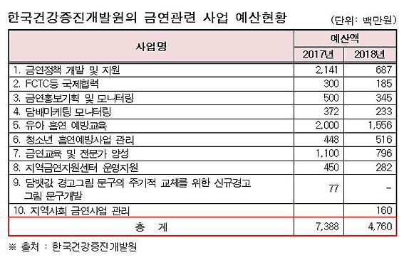 ¾Æ¿ï·¯ ¡°ÀÌó·³ »ç¾÷ ¼º°ú°¡ ¾ø´Ùº¸´Ï, ±Ý¿¬°ü·Ã ¿¹»êµµ 2017³â 73¾ï 8õ800¸¸ ¿ø¿¡¼ 2018³â 47¾ï 6õ¸¸ ¿øÀ¸·Î 35.6%³ª ´ëÆø »è°¨µÆ°í, ÀÌ·¯ÇÑ ¿¹»ê »è°¨Àº Çѱ¹°Ç°ÁõÁø°³¹ß¿øÀÌ ÀÚÃÊÇÑ °á°ú·Î ÀÚ¼ºÇØ¾ß ÇÑ´Ù¡±°í ÁöÀûÇß´Ù.