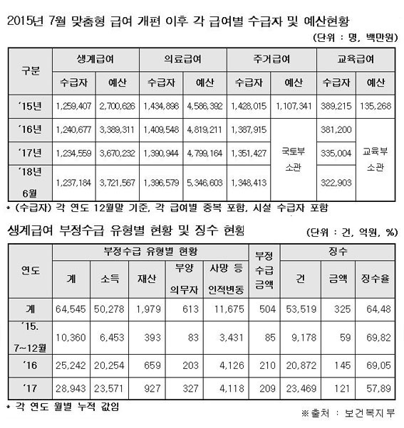 2015³â 7¿ùºÎÅÍ °³ÆíµÈ ¸ÂÃãÇü ±Þ¿©·Î ÀÎÇØ 2018³â 6¿ù ÇöÀç, »ý°è±Þ¿© ¼ö±ÞÀÚ´Â 2¸¸ 2õ223¸íÀÌ °¨¼ÒÇÏ¿´°í, ÀÇ·á±Þ¿© ¼ö±ÞÀÚ´Â 3¸¸ 8õ319¸í °¨¼ÒÇß´Ù.