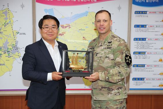 ÀÌ¿¡ ¿À ½ÃÀåÀº ¡°¸Õ À̱¹¶¥¿¡¼ Çѱ¹ÀÇ ¾Èº¸¸¦ À§ÇØ ³ë·ÂÇϽô ¹Ì±ºÀ庴°ú °¡Á·µéÀÌ Àß ÀûÀÀÇØ ³ª°¥ ¼ö ÀÖµµ·Ï ¾Æ»ê½ÃÀÇ ¿ªÇÒ°ú ³ë·ÂÀ» ´ÙÇÒ °Í¡±À̶ó¸ç ¡°´ëÈÀÇ Åë·Î¸¦ ¿°í ¾ðÁ¦µç »óÈ£ ¼ÒÅëÇÏ¿© »ó»ýÇÏ´Â Çù·Â°ü°è·Î ³ª¾Æ°¡ÀÚ¡±°í ¸»Çß´Ù.