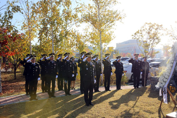 °æÂûÀÇ ³¯ ±â³ä½Ä¿¡ ¾Õ¼ ÀÌÀç¿ Ã»ÀåÀ» ºñ·ÔÇÑ °æÂû ÁöÈֺδ ±¹°¡¿Í ±¹¹ÎÀ» À§ÇØ ¸ñ¼ûÀ» ¹ÙÄ£ Àü»ç¡¤¼øÁ÷°æÂû°üÀÇ ¼þ°íÇÑ Èñ»ýÁ¤½ÅÀ» ±â¸®±â À§ÇØ Ã»»ç¿¡ ¸¶·ÃµÈ Ãß¸ð°ø¿ø¿¡¼ ÇåÈ ºÐÇâÇϰí Âü¹èÇß´Ù.