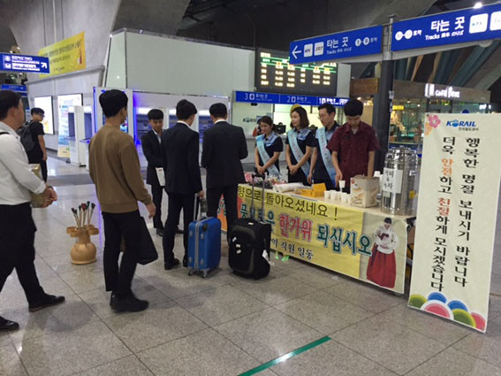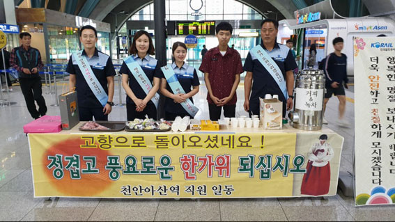 | | ¨Ï ¿Â¾ç½Å¹® | | Çѱ¹Ã¶µµ°ø»ç ´ëÀüÃæ³²º»ºÎ õ¾È¾Æ»ê¿ª(¿ªÀå ÀÌÁ¤³²)Àº Áö³ 9¿ù 21ÀÏ ¹ÎÁ· °íÀ¯ÀÇ ¸íÀýÀÎ Ãß¼®À» ¸ÂÀÌÇØ õ¾È¾Æ»ê¿ªÀ» ¹æ¹®ÇÏ´Â ±Í¼º°´¿¡°Ô °¨»çÀÇ ¸¶À½À» ÀüÇÏ´Â ´Ùä·Î¿î °í°´ »çÀº Çà»ç¸¦ ¸¶·ÃÇß´Ù.