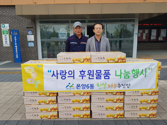 ¾Æ»ê½Ã ¿Â¾ç6µ¿ ¸À°ñ³ó¿ø(´ëÇ¥ ÀÓ¼±¹Î)Àº 9¿ù 20ÀÏ Ãß¼®¸íÀýÀ» ¸Â¾Æ »ç¶ûÀÇ ¹è 30»óÀÚ(105¸¸¿ø »ó´ç)¸¦ ¿Â¾ç6µ¿ ÇູŰ¿òÃßÁø´Ü(´ÜÀå À̹ü¿µ)¿¡ Àü´ÞÇß´Ù.