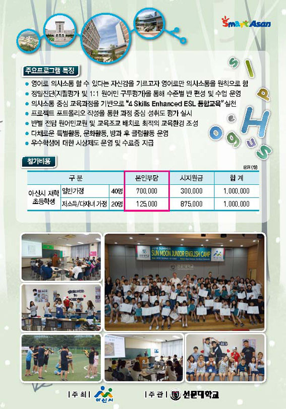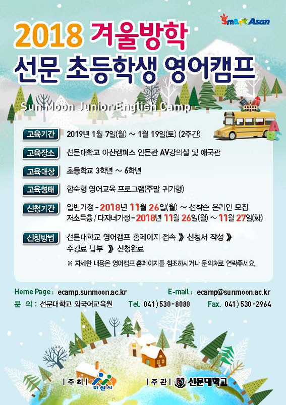 ÇÑÆí, ¿µ¾îÄ·ÇÁ Á¢¼ö ¹× ÀÚ¼¼ÇÑ ¹®ÀÇ´Â ¼øÃµÇâ´ëÇб³ ±¹Á¦±³À°±³·ùó(http://sgee.sch.ac.kr/ 530-1383,1398)¿Í ¼±¹®´ë ¿Ü±¹¾î±³À°¿ø(http://ecamp.sunmoon .ac.kr/ 530-8080) ȨÆäÀÌÁö¿¡¼ ÇÏ¸é µÈ´Ù.