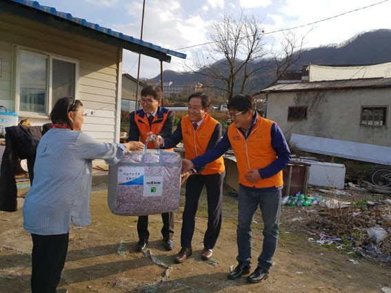 µ¿Àý±â Ãë¾à°èÃþ Áö¿øÀ» À§ÇÑ Ã£¾Æ°¡´Â ¸ÂÃãÇü º¸°Ç¡¤º¹Áö ¼ºñ½ºÀÇ ÀÏȯÀ¸·Î ¾Æ»ê¼ºÎ½ÅÇù(ÀÌ»çÀå ±èÇѱÔ)¿¡¼ ±â±ÝÀ» ¸¶·ÃÇØ ±âŹÇϰí ÀÓÁ÷¿øµéÀÌ ÇÔ²² ÀϺΠ´ë»óÀÚ ¼¼´ë¸¦ Á÷Á¢ ¹æ¹®ÇØ ¹°Ç°À» Àü´ÞÇß´Ù.