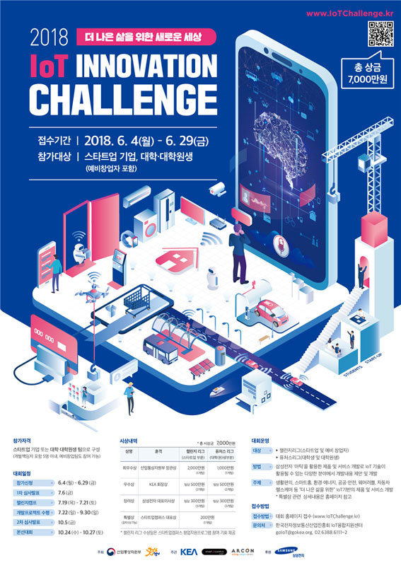 Çѱ¹ÀüÀÚÁ¤º¸Åë½Å»ê¾÷ÁøÈïȸ¿Í ½ºÅ¸Æ®¾÷Ä·ÆÛ½º°¡ °øµ¿ÁÖ°üÇÏ°í »ï¼ºÀüÀÚ°¡ ÈÄ¿øÇÑ IoT À̳뺣ÀÌ¼Ç Ã§¸°Áö´Â IoT ±â¼úÀ» Ȱ¿ëÇÑ ½Å»ç¾÷ À°¼º°ú °³¹ßÀÚ Àúº¯ È®´ë¸¦ ¸ñÇ¥·Î 2016³âºÎÅÍ ½ÃÀÛµÈ ´ëȸ´Ù. ÀÏ¹Ý °ø¸ðÀü°ú ´Þ¸® IoT Ç÷§ÆûÀ» Ȱ¿ëÇØ ¾ÆÀ̵ð¾î¸¦ °íµµÈÇÏ°í ½ÃÁ¦Ç°±îÁö Á¦ÀÛÇÑ´Ù.