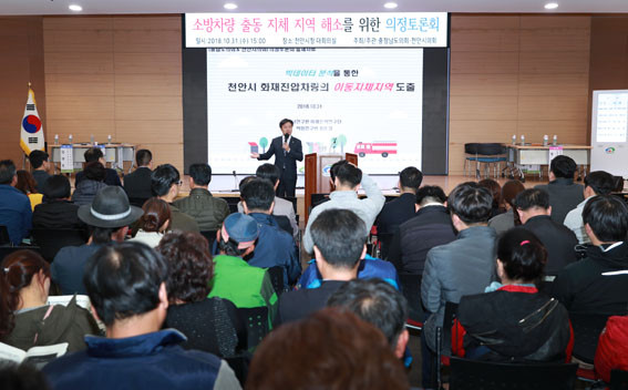 Ãæ³²µµÀÇȸ´Â 10¿ù 31ÀÏ Ãµ¾È½Ãû ´ëȸÀǽǿ¡¼ õ¾È½ÃÀÇȸ¿Í °øµ¿À¸·Î ¡®¼Ò¹æÂ÷·® Ã⵿ ÁöüÁö¿ª ÇØ¼Ò¸¦ À§ÇÑ ÀÇÁ¤Åä·Ðȸ¡¯¸¦ °³ÃÖÇß´Ù°í ¹àÇû´Ù.