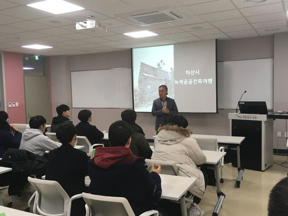 | | ¡è¡è ¡ã½ÅÁÖºÀ °úÀåÀÌ ¿©ÇàÄÚ½º¸¦ ¹æ¹®ÇÑ ¿ë»ê°ø¾÷°íµîÇб³ Çлýµé¿¡°Ô ³ì»ö°ÇÃà¿¡ ´ëÇÏ¿© °ÀǸ¦ ÁøÇàÇϰí ÀÖ´Ù. | ¨Ï ¿Â¾ç½Å¹® | | ½ÅÁÖºÀ ¾Æ»ê½Ã °ø°ø½Ã¼³°úÀåÀº ¡°¾ÕÀ¸·Î ¿ì¸®³ª¶ó °ÇÃà°è¸¦ À̲ø°í °¥ °íµîÇлýµéÀÌ ±âÈĺ¯ÈÀÇ ½É°¢¼º°ú ³ì»ö°ÇÃàÀÌ ¿Ö ÇÊ¿äÇÑÁö¿¡ ´ëÇØ ÃæºÐÈ÷ ÀνÄÇÒ ¼ö ÀÖ´Â ½Ã°£ÀÌ µÇµµ·Ï ³ë·ÂÇß´Ù. ´õ ¸¹Àº ÇлýµéÀÌ ¿ì¸®½ÃÀÇ ³ì»ö°ÇÃà ¿©ÇàÄÚ½º¸¦ ¹æ¹®Çϵµ·Ï ³ë·ÂÇϰڴ١±°í ¹àÇû´Ù.