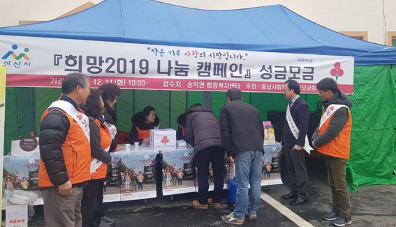 ÇÑÆí Èñ¸Á2019 ³ª´®Ä·ÆäÀÎÀº ¡®»ç¶ûÀÇ ¿¸Å 20³â, ³ª´®À¸·Î ÇູÇÑ ¼¼»ó¡¯À̶ó´Â ½½·Î°ÇÀ¸·Î ³»³â 1¿ù 31ÀϱîÁö ¸ð±ÝÀ» ½Ç½ÃÇϸç, Èñ¸Á³ª´®Ä·ÆäÀο¡ Âü¿©¸¦ ¿øÇÏ´Â ÁֹεéÀº ¼Û¾Ç¸éÇàÁ¤º¹Áö¼¾ÅÍ ¸ÂÃãÇüº¹ÁöÆÀ(041-537-3037)À¸·Î ¿¬¶ôÇÏ¸é °£´ÜÇÑ ÀýÂ÷¸¦ ÅëÇØ ÀÌ¿ô¿¡°Ô µû¶æÇÔÀ» ÀüÇÒ ¼ö ÀÖ´Ù.