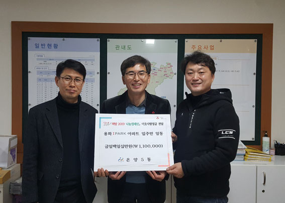| | ¡è¡è ¡ã¿ëȾÆÀÌÆÄÅ©¾ÆÆÄÆ® ÀÔÁÖÀÚ´ëǥȸÀÇ ¼º±Ý Àü´Þ. (»çÁø ¿ÞÂʺÎÅÍ) ÀÌâÁØ ¿ëȾÆÀÌÆÄÅ©¾ÆÆÄÆ® °ü¸®¼ÒÀå, ±è¿ÀÁ÷ ¿Â¾ç5µ¿Àå, ¿ÀÁ¡±Ù ¿ëȾÆÀÌÆÄÅ© ÀÔÁÖÀÚ´ëÇ¥ | ¨Ï ¿Â¾ç½Å¹® | | ¾Æ»ê½Ã ¿ëȾÆÀÌÆÄÅ©¾ÆÆÄÆ® ÀÔÁÖÀÚ´ëǥȸÀÇ(ÀÔÁÖÀÚ´ëÇ¥ ¿ÀÁ¡±Ù)´Â 12¿ù 24ÀÏ ¿Â¾ç5µ¿ ÇàÁ¤º¹Áö¼¾Å͸¦ ¹æ¹®ÇØ ¡®Èñ¸Á2019 ³ª´®Ä·ÆäÀΡ¯ ÀÌ¿ôµ½±â ¼º±Ý¸ð±Ý¿¡ µ¿ÂüÇÏ¸ç ¼º±Ý 110¸¸ ¿øÀ» Àü´ÞÇß´Ù.