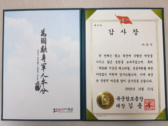 ¾Æ»ê½Ã, À°±ºÂü¸ðÃÑÀå °¨»çÀå ¹Þ¾Æ