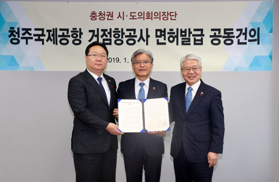 À¯º´±¹ Ãæ³²µµÀÇȸ ÀÇÀåÀº ¡°¿©°´°ú ȹ° ¼ö¼Û È®´ë¸¦ ÅëÇÑ Ã»ÁÖ±¹Á¦°øÇ× È°¼ºÈ ¹× ÁßºÎ±Ç ÁֹεéÀÇ Ç×°øÀÌ¿ë ÆíÀǸ¦ À§ÇØ °ÅÁ¡Ç×°ø»ç ¸éÇã¹ß±ÞÀÌ ½Ã±ÞÇÏ´Ù¡±¸ç, ¡°Ã»ÁÖ±¹Á¦°øÇ× °ÅÁ¡Ç×°ø»ç ¸éÇ㠹߱ÞÀº ±¹°¡±ÕÇü¹ßÀü°ú ÀÏÀÚ¸® âÃâÀ̶ó´Â ¹®ÀçÀÎ Á¤ºÎÀÇ 100´ë ±¹Á¤°úÁ¦¸¦ ½ÇÇöÇÏ´Â ÇϳªÀÇ ¹æ¾ÈÀ̱⵵ ÇÏ´Ù¡±°í °Á¶Çß´Ù.