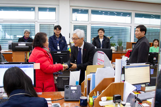 ÀÌ¾î ¡°Á÷¿øµé°ú °°ÀÌ ÈûÀ» º¸Å°í ÇØ°áÀÌ ºÒ°¡´ÉÇÑ ºÎºÐÀº °°ÀÌ °ÆÁ¤ÇÏ´Â ÀÚ¼¼¸¦ °®°Ú´Ù. ¾î·Á¿î ¸é¹Î°ú ¸¹Àº ¹Î¿øÀ¸·Î ÇàÁ¤¼ö¿ä°¡ ³ô¾ÆÁö´Â ¸¸Å Á÷¿øµéÀÇ Å« ¾î·Á¿òÀÌ ÀÖÀ» ÅÙµ¥, Á÷¿øµéÀÌ ´Ù ÇÔ²² ¹Î¿øÀÎÀÌ ³» ºÎ¸ð, ³» ÀÌ¿ôÀ̶ó »ý°¢ÇÏ´Â ¸¶À½À̶ó¸é ´ú ¼Ó»óÇÒ °Í °°´Ù. ½Ã¹ÎµéÀÇ Á¢Á¡ÀÌ À¾¸éµ¿ Á÷¿øÀÎ ¸¸Å °°ÀÌ ÈûÀ» ÇÕÃÄ ³ª°¡ÀÚ¡±°í ¸»Çß´Ù.