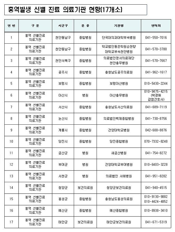 È«¿ª¹ß»ý ¼±º° Áø·á ÀÇ·á±â°ü ÇöȲ(17°³¼Ò)Àº ´ÙÀ½°ú °°´Ù.