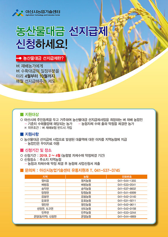 ¾Æ»ê½Ã(½ÃÀå ¿À¼¼Çö)´Â 2019³â ³ó»ê¹°´ë±Ý ¼±Áö±ÞÁ¦(ÀÏ¸í ¡®³ó¾÷ÀÎ ¿ù±ÞÁ¦¡¯)¸¦ º Àç¹è ³ó¾÷ÀÎÀ» ´ë»óÀ¸·Î ¿ù Áö±Þ »óÇѾ×À» 2018³â 150¸¸ ¿ø¿¡¼ 2019³â 200¸¸ ¿øÀ¸·Î È®´ë ½ÃÇàŰ·Î °áÁ¤ÇÏ°í ´ë»óÀÚ¸¦ ¸ðÁýÇÑ´Ù.