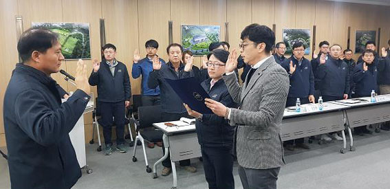À̳¯ °áÀÇ´ëȸ ¹× ¼¾à½Ä¿¡¼ K-water-½Ã°ø»ç-Çϵµ±Þ»ç 40¿©¸íÀº ¡âºÒ°øÁ¤ ÇàÀ§ ±ÙÀý, ¡â°øÁ¤ÇÑ ¾÷¹«±âÁØ Áؼö, ¡âÇÕ¸®ÀûÀ̰í Åõ¸íÇÑ ¾÷¹«Ã³¸®, ¡âºÎÆÐ¿¹¹æ ¹× û·ÅÇÑ °Ç¼³¹®È Á¤ÂøÀ» ´ÙÁüÇÏ°í °Ç¼³ÇöÀåÀÇ Ã»·Å ÀǽÄÀ» Ç¥¸íÇß´Ù.