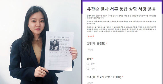| | ¡è¡è ¡ã<¿ÞÂÊ>¼¸í¿îµ¿ÀÇ Ã¹ ¼¸íÁÖÀÚ·Î ³ª¼± ¹è¿ì °í¾Æ¼º <¿À¸¥ÂÊ>À¯°ü¼ø ¿»ç ¼ÈƵî±Þ »óÇâÀ§ÇÑ ¼¸í¿îµ¿ÀÇ ¿Â¶óÀÎ ¼¸íÁö <»çÁøÁ¦°ø=¼°æ´ö ±³¼ö> | ¨Ï ¿Â¾ç½Å¹® | | 3.1¿îµ¿ ¹× ÀÓ½ÃÁ¤ºÎ¼ö¸³ 100ÁÖ³âÀ» ±â³äÇØ ¼º½Å¿©´ë ¼°æ´ö ±³¼öÆÀÀÌ ¡®À¯°ü¼ø ¿»ç ¼ÈƵî±Þ »óÇâÀ§ÇÑ ¼¸í¿îµ¿¡¯À» ½ÃÀÛÇÑ´Ù°í 2¿ù 1ÀÏ ¹àÇû´Ù.