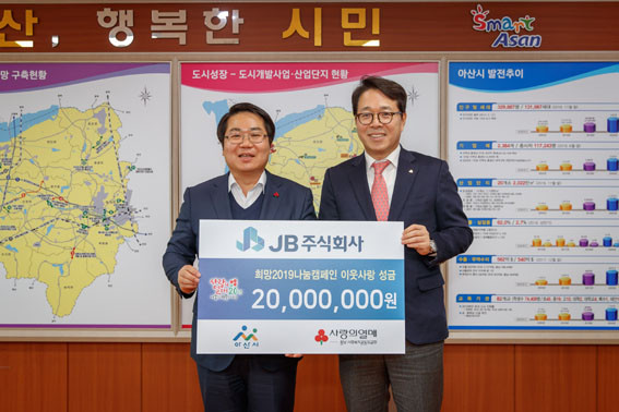 À̳¯ Àü´ÞµÈ ¼º±ÝÀº JBÁÖ½Äȸ»ç¿¡¼ ¾Æ»ê½ÃÀÇ º¹Áö»ç°¢Áö´ë µîÀÇ Ãë¾à°èÃþ¿¡°Ô µµ¿òÀ» ÁÖ°íÀÚ Àü´ÞÇÑ °ÍÀÌ´Ù.