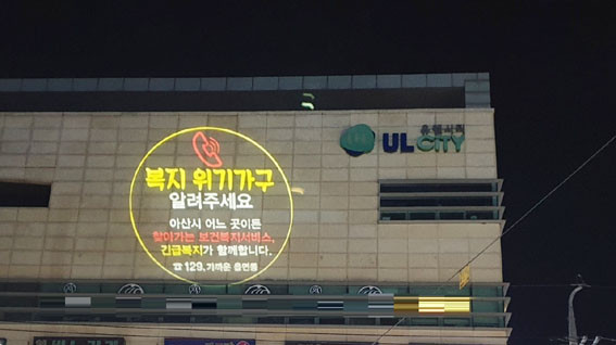 ½Ã´Â À¯µ¿Àα¸°¡ °¡Àå ¸¹Àº ¾Æ»ê½Ã ½Ã¹Î¹®Èº¹Áö¼¾ÅÍ(±¸ ¾Æ»ê°æÂû¼) »ç°Å¸®¿¡ ¼³Ä¡µÈ ·Î°íÁ§ÅÍ·Î ¡®º¹Áö À§±â°¡±¸ ¹ß±¼, ã¾Æ°¡´Â º¸°Çº¹Áö¼ºñ½º ¹× ±ä±Þº¹ÁöÁö¿ø¡¯¿¡ ´ëÇÑ ¾È³» ¹®±¸¸¦ ¼ÛÃâÇØ È¿°úÀûÀ¸·Î Á¦µµ¸¦ È«º¸ÇÑ´Ù.