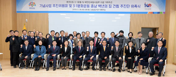 Ãæ³²µµ´Â 2¿ù 26ÀÏ Ãæ³²µµ¼°ü¿¡¼ 3.1¿îµ¿ 100Áֳ⠱â³ä»ç¾÷ ÃßÁøÀ§¿øÈ¸ ¹× ¹é³âÀÇÁý °Ç¸³ÃßÁø´Ü À§Ã˽ÄÀ» °³ÃÖÇß´Ù.
