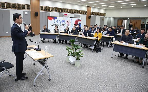 À̳¯ °£´ãȸ´Â ¾ç½ÂÁ¶ Áö»ç¸¦ ºñ·ÔÇÑ Áß°£Áö¿øÁ¶Á÷ ¼¾ÅÍÀå, °ü·Ã ºÎ¼Àå µî 60¿©¸íÀÌ Âü¼®ÇÑ °¡¿îµ¥, µµÁ¤ ÁÖ¿äÁ¤Ã¥ ¼Ò°³, Áö»ç¿ÍÀÇ Á¤Ã¥°£´ãȸ, ¼¾ÅÍÀå-ºÎ¼Àå °£ ¼ÒÅë ¼øÀ¸·Î ÁøÇàµÆ´Ù.