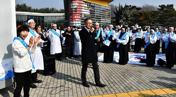 À̹ø ´ëȸ¸¦ ÁÖÃÖÇÑ ±Ç¿µ¿í ´ëȸÀå(³ª»çº» ÃÑÀç, õ¾È¡¤¾Æ»êÃæ¹«º´¿ø ȸÀå)Àº ¡°3.1¿îµ¿Àº ¿Â °Ü·¹°¡ ¿ì¸® ¹ÎÁ·ÀÇ µ¶¸³Á¤½Å°ú ÀÚÁÖ¿ª·®À» ÃÑÁý°áÇØ °ÅÁ·ÀûÀ¸·Î ÀÏÀ¸Å² ÀÏÁ¦ÇÏ ÃÖ´ëÀÇ Ç×Àϵ¶¸³¿îµ¿À¸·Î Á¦±¹ÁÖÀÇ Ä§·«°ú ½Ä¹ÎÅëÄ¡ ¾Æ·¡ ½ÅÀ½ÇÏ´ø ¾à¼Ò¹ÎÁ·ÀÇ µ¶¸³¿¡ Ä¿´Ù¶õ ¿µÇâÀ» ³¢ÃÆ´Ù¡±¸é¼ ¡°±×·¯ÇÑ ¸Æ¶ô¿¡¼ 3.1¿îµ¿ 100ÁÖ³âÀ» ¸ÂÀÌÇØ µ¶¸³¸¸¼¼ÀÇ °¡Ä¡¸¦ »õ·Ó°Ô ÀνÄÇÏ°í ¾Ö±¹Á¤½ÅÀ¸·Î °¡´Ùµë¾î ±¹¹ÎµéÀÇ ¿Á¤°ú ÁöÇý¸¦ ¸ð¾Æ ±¹¹Î´ëÅëÇÕÀ» ÀÌ·ç°í ´õ¿í ´õ ³ª¶ó¸¦ »ç¶ûÇÏ´Â °è±â·Î »ï¾Æ°¡°íÀÚ ÇÑ´Ù¡±°í ¹àÇû´Ù.