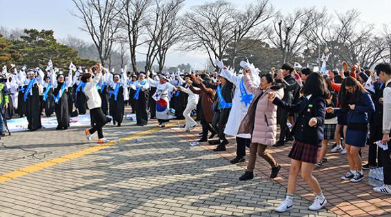 À̾î 12½Ã10ºÐ ºÎÅÍ´Â 3.1Á¤½Å°è½ÂÀ» À§ÇÑ Á¦21ȸ ³ª¶ó»ç¶ûÇѸ¶À½°È±â´ëȸ°¡ µ¶¸³±â³ä°ü °Ü·¹ÀÇÅ«¸¶´ç°ú °Ü·¹ÀÇ Å¾À» ¿Õº¹ÇÏ´Â 2km±¸°£¿¡¼ ¸¸¼¼ÀçÇö°ú ÇÔ²² ¸¸¼¼ ÇÔ¼ºÀ» ÈûÂ÷°Ô ¿ÜÄ¡¸ç ´ç½Ã ¼ö ¸¹Àº °í³°ú ¿ª°æ¿¡µµ ±¼ÇÏÁö ¾Ê¾Ò´ø ¼±¿µéÀÇ ¼þ°íÇÑ ³ª¶ó»ç¶û Á¤½ÅÀ» µÇ»õ±â°í Èñ¸ÁÂù ÀÇÁö¸¦ ´ÙÁ³´Ù.