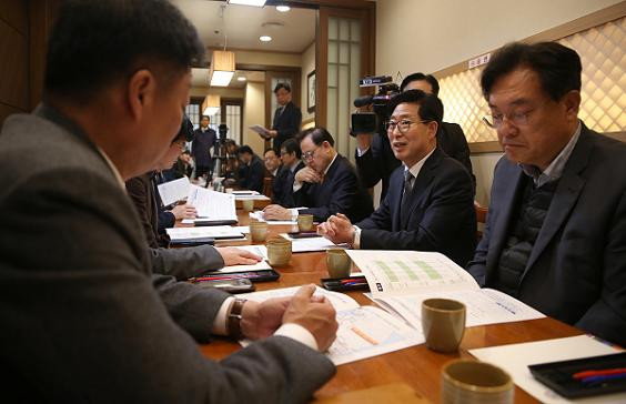 ¾ç Áö»ç´Â 3¿ù 5ÀÏ Ã»¿Í´ë¸¦ ¹æ¹®, ³ë¿µ¹Î ºñ¼½ÇÀå°ú °±âÁ¤ Á¤¹«¼ö¼®, ±è¼öÇö Á¤Ã¥½ÇÀå, À±Á¾¿ø °æÁ¦¼ö¼® µîÀ» ÀÕµû¶ó ¸¸³µ´Ù.