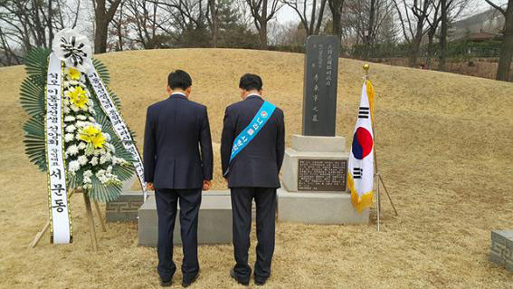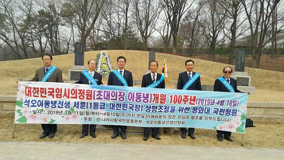 À̳¯ ¼±¾çȸ ¼¹®µ¿ »óÀÓ´ëÇ¥´Â ¡°¼®¿À À̵¿³ç¼±»ýÀº ¿ì¸®°¡ »ç¶ûÇÏ´Â ´ëÇѹα¹À̶ó´Â ³ª¶óÀÇ À̸§À» Áþ°í, ¹ÎÁÖ °øÈÁ¦¿Í »ï±ÇºÐ¸³À» ±ÔÁ¤Çϸç ÀÓ½ÃÀÇÁ¤¿ø ÃÊ´ëÀÇÀå°ú ±¹¹«À§¿øÀ¸·Î ¿ì¸®³ª¶ó ¹ÎÁÖÁÖÀÇÀÇ Ãʼ®À» ´ÙÁö½Å ºÐÀ̰í, 1940³â±îÁö ³× ¹ø¿¡ °ÉÃÄ ÀÓ½ÃÁ¤ºÎ ÁÖ¼®À» ¿ªÀÓÇϼÌÀ¸¸ç, ±× ¿Ü¿¡µµ ±¹¹«ÃѸ®¿Í ´ëÅë·É´ë¸®, ±¹¹«·É µîÀ» ¿ªÀÓÇϸç À±ºÀ±æ ÀÇ»ç, À̺Àâ ÀÇ»çÀÇ ÀǰŸ¦ Àû±Ø Áö¿øÇϽŠºÐÀÌ´Ù¸ç ÀÌ·Î ÀÎÇØ ¾öû³ ź¾ÐÀ» ¹Þ¾Æ ¸¹Àº µµÇÇ»ýȰÀ» Çϼ̴١±¸é¼ ¡°Æ¯È÷ 1920³â´ë µ¶¸³ ¼¼·ÂÀÌ ºÐ¿µÇ¾î ÀÓ½ÃÁ¤ºÎ°¡ Á¸ÆóÀÇ À§±â¿¡ ÀÖÀ» ¶§ ¿À·ÎÁö ¹ÎÁ· ´Ü°áÀ» ¿ÜÄ¡¸ç ÇùÄ¡¿Í ÅëÇÕ ¼Ö¼±¼ö¹üÀÇ ¸®´õ½ÊÀ¸·Î À§±â »óȲÀ» ±Øº¹Çϴµ¥ ¼±±¸ÀÚÀûÀÎ ¿ªÇÒÀ» ÇØ ¿À½Å ºÐÀÌ´Ù¡±°í °Á¶Çß´Ù.