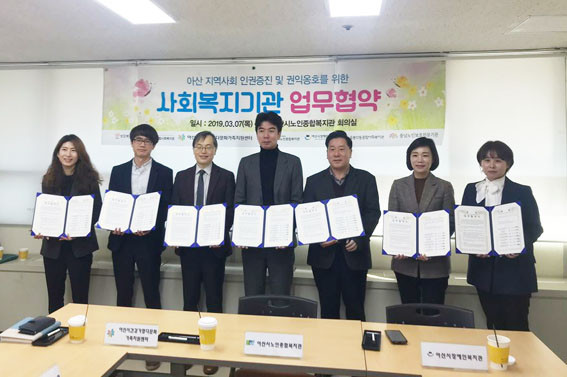 À̹ø Çù¾à¿¡´Â ¾Æ»êÀ庹À» ºñ·ÔÇØ ¾Æ»ê½Ã°Ç°°¡Á¤´Ù¹®È°¡Á·Áö¿ø¼¾ÅÍ(¼¾ÅÍÀå Á¶»ïÇõ), ¾Æ»ê½Ã³ëÀÎÁ¾ÇÕº¹Áö°ü(°üÀå À̼¼À¶), ¼º¸ðº¹Áö¿ø(¿øÀå ¾È¼÷¿µ), À½ºÀ»êµ¿Á¾ÇÕ»çȸº¹Áö°ü(°üÀå À庸À±), Ãæ³²³ëÀκ¸È£Àü¹®±â°ü(°üÀå Á¤¹Ì¼±), ¾Æ»ê¼ºÎÁ¾ÇÕ»çȸº¹Áö°ü(°üÀå À̰ǿ) µî ¾Æ»êÁö¿ª³» »çȸº¹Áö±â°ü 7°÷ÀÌ ÇÔ²²ÇÏ¿´´Ù.