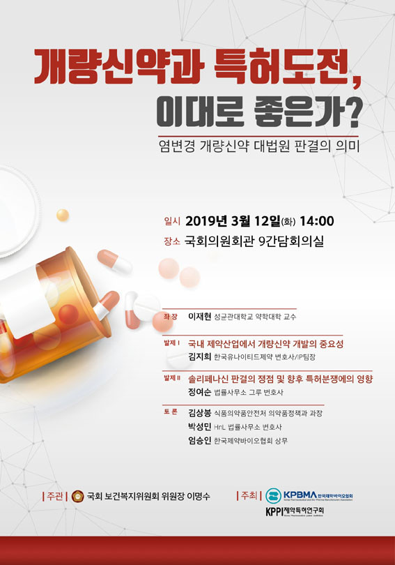 ÀÌ¿¡ À̸í¼ö ÀÇ¿øÀº ¡°ÇϳªÀÇ ½Å¾àÀ» °³¹ßÇϰí Ãâ½ÃÇϱâ±îÁö ¸·´ëÇÑ ºñ¿ë°ú ¿À·£ ½Ã°£ÀÌ ¼Ò¿äµÊ¿¡µµ ÃÖ±Ù ´ë¹ý¿øÀÇ ¡®°³·®½Å¾à ƯÇã±Ç Ä§ÇØ ÆÇ°á¡¯Àº ±¹³» Á¦¾à±â¾÷µéÀÇ °³·®½Å¾à °³¹ßµ¿·ÂÀ» ¾àȽÃų ¼ö ÀÖ´Ù¡±¸ç ±¹³» Á¦¾à±â¾÷ÀÇ ½Å¾à°³¹ß ÀÇÁö ÀúÇϸ¦ ¿ì·ÁÇß´Ù.