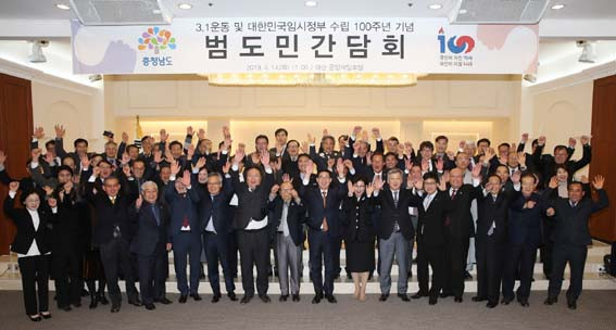 ÀÌ ÀÚ¸®¿¡¼ ¾ç Áö»ç´Â ¡°Ãæ³²Àº À¯°ü¼ø ¿»ç¸¦ ºñ·ÔÇÑ ¼ö¸¹Àº ¾Ö±¹Áö»ç¸¦ ¹èÃâÇÑ 3.1¿îµ¿°ú µ¶¸³ÅõÀïÀÇ ¼ºÁö·Î ÀÚ¸® ¸Å±èÇß´Ù¡±¸ç ¡°100ÁÖ³âÀÌ µÇ´Â ¿ÃÇØ, ¿ì¸® Ãæ³²¿¡¼ 3.1¿îµ¿ÀÇ °¨µ¿°ú ¹ÎÁ·Àû ´Ü°áÀ» µÇ»ì·Á ³»°íÀÚ ÇÑ´Ù¡±°í ¹àÇû´Ù.