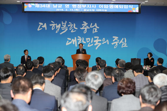 | | ¡è¡è <»çÁøÁ¦°ø=Ãæ³²µµ> | ¨Ï ¿Â¾ç½Å¹® | | ³²±Ã¿µ Ãæ³²µµ Á¦34´ë ÇàÁ¤ºÎÁö»ç ¸í¿¹ÅðÀÓ½ÄÀÌ 2¿ù 14ÀÏ Ãæ³²µµÃ» ´ëȸÀǽǿ¡¼ ¿·È´Ù.