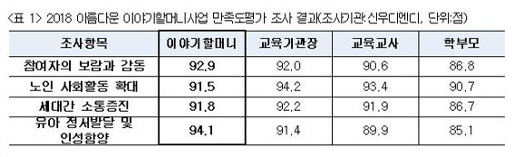 ¡®2018³âµµ À̾߱âÇÒ¸Ó´Ï È°µ¿¼ö±â °ø¸ðÀü¡¯¿¡¼ ¿ì¼ö»óÀ» ¹ÞÀº ¹ÚÃáÀÚ À̾߱âÇÒ¸Ó´Ï(°æ±â ºÎõ, 5±â)ÀÇ ¼ö±âó·³ Ȱµ¿¿¡ Âü¿© ÁßÀÎ À̾߱âÇҸӴϵéÀº ³ë³â¿¡ ÇÒ ÀÏÀÌ ÀÖ°í ±× ÀÏÀÌ À¯¾ÆµéÀÇ ÀμºÇԾ翡 µµ¿òÀ» Áشٴ Á¡¿¡ Å« º¸¶÷À» ´À³¢°í ÀÖ´Ù. (<Ç¥1> ÂüÁ¶)