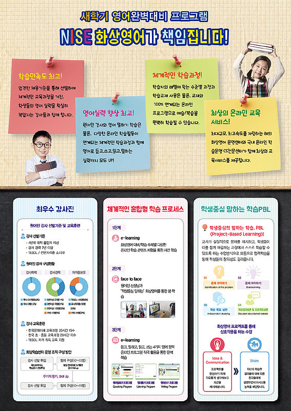 ¿ø¾î¹Î°ú ¼ö°»ýÀÇ 1:4¼ö¾÷ ¶Ç´Â 1:1 ¼ö¾÷À» ¼±ÅÃÇÒ ¼ö ÀÖÀ¸¸ç »çÀü ·¹º§Å×½ºÆ®¸¦ °ÅÃÄ ¹ÝÀ» °áÁ¤Çϰí È»ó¿µ¾î ¼ö¾÷ Àü »çÀüÇнÀ°ú ¼ö¾÷ ÈÄ ¸»Çϱâ, µè±â, ¾²±âÀÇ º¹½ÀÀ» ÅëÇØ ½Ç·ÂÀ» ´ÙÁø´Ù.