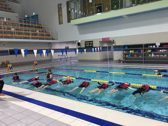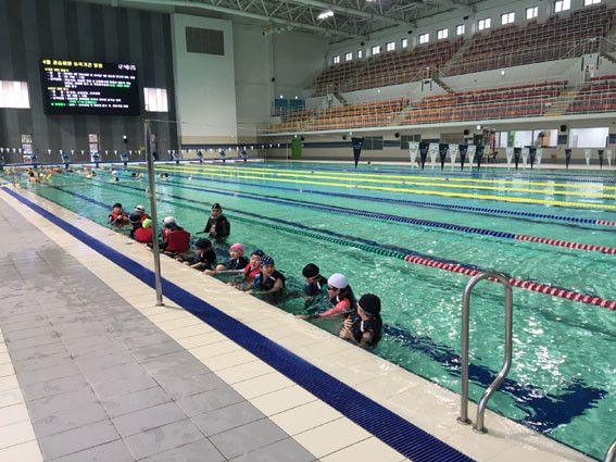 ¼ö¿µ½Ç±â ±³À°Àº ¹° ÀûÀÀ ÈÆ·ÃÀ» ½ÃÀÛÀ¸·Î űÆÇ Àâ°í ¹°Â÷±â ÈÆ·Ã, ±íÀº ¹° À̵¿ ÈÆ·Ã, À§±Þ ½Ã »ýÁ¸ ±¸È£ ÈÆ·ÃÀ¸·Î ¹°¿¡ ´ëÇÑ µÎ·Á¿òÀ» ÁÙÀÌ°í ¹°°ú Ä£ÇØÁú ¼ö ÀÖ°í, ´õºÒ¾î Çлýµé »óÈ£°£ ¿ì¾Ö¿Í »ç¶ûÀ» °øÀ¯ÇÏ¸ç °Ç°°ú ¹Ù¸¥ ÀμºÀ» ÇÔ¾çÇÒ ¼ö ÀÖ´Â ¼ÒÁßÇÑ Ã¼ÇèÀ» ÇÒ °ÍÀ¸·Î ±â´ëµÈ´Ù.