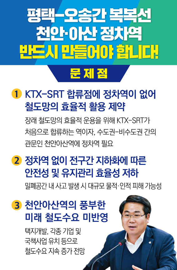 ½Ã´Â KTX-SRT ÇÕ·ùÁ¡¿¡ Á¤Â÷¿ªÀÌ ¾ø¾î öµµ¸ÁÀÇ È¿À²Àû Ȱ¿ëÀÌ Á¦¾àµÇ±â ¶§¹®¿¡ Àå·¡ öµµ¸ÁÀÇ È¿À²Àû ¿î¿µÀ» À§ÇØ KTX-SRT°¡ óÀ½À¸·Î ÇÕ·ùÇÏ´Â ¿ªÀÌÀÚ, ¼öµµ±Ç-ºñ¼öµµ±Ç°£ÀÇ °ü¹®ÀΠõ¾È¾Æ»ê¿ª¿¡ Á¤Â÷¿ª ¼³Ä¡ÀÇ Çʿ伺À» °Á¶Çß´Ù.