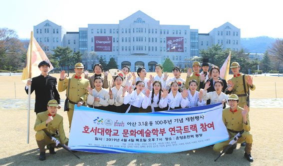 | | ¡è¡è <»çÁøÁ¦°ø=È£¼´ëÇб³> | ¨Ï ¿Â¾ç½Å¹® | | È£¼´ëÇб³(ÃÑÀå ÀÌö¼º) ¿¬±ØÀü°ø ÇлýµéÀÌ 3.1¿îµ¿°ú ´ëÇѹα¹ÀÓ½ÃÁ¤ºÎ¼ö¸³ 100ÁÖ³âÀ» ±â³äÇØ Áö³ 4¿ù 4ÀÏ ¿Â¾ç¿Âõ¿ª ±¤Àå¿¡¼ ¡®¾Æ»ê µ¶¸³¸¸¼¼¿îµ¿ ÀçÇö ÆÛÆ÷¸Õ½º¡¯¸¦ ¼±º¸¿´´Ù.